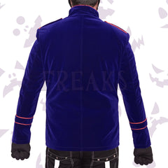 Command a distinguished presence with Freaks' Blue Steampunk Velvet Coat. This opulent long-sleeve jacket is a true masterpiece of military regalia blended with gothic sophistication. Crafted from luxurious, soft royal blue velvet, it's dramatically accented by vibrant red contrast piping along the high stand-up collar, front opening, and functional flap pockets. Gleaming silver ornate buttons secure the front, while structured shoulder epaulets and red-trimmed cuffs complete its commanding, disciplined aesthetic. Perfect for gothic events, Steampunk gatherings, cosplay, or making a grand statement in your everyday alternative formal wear, this coat embodies refined authority and vivid style.