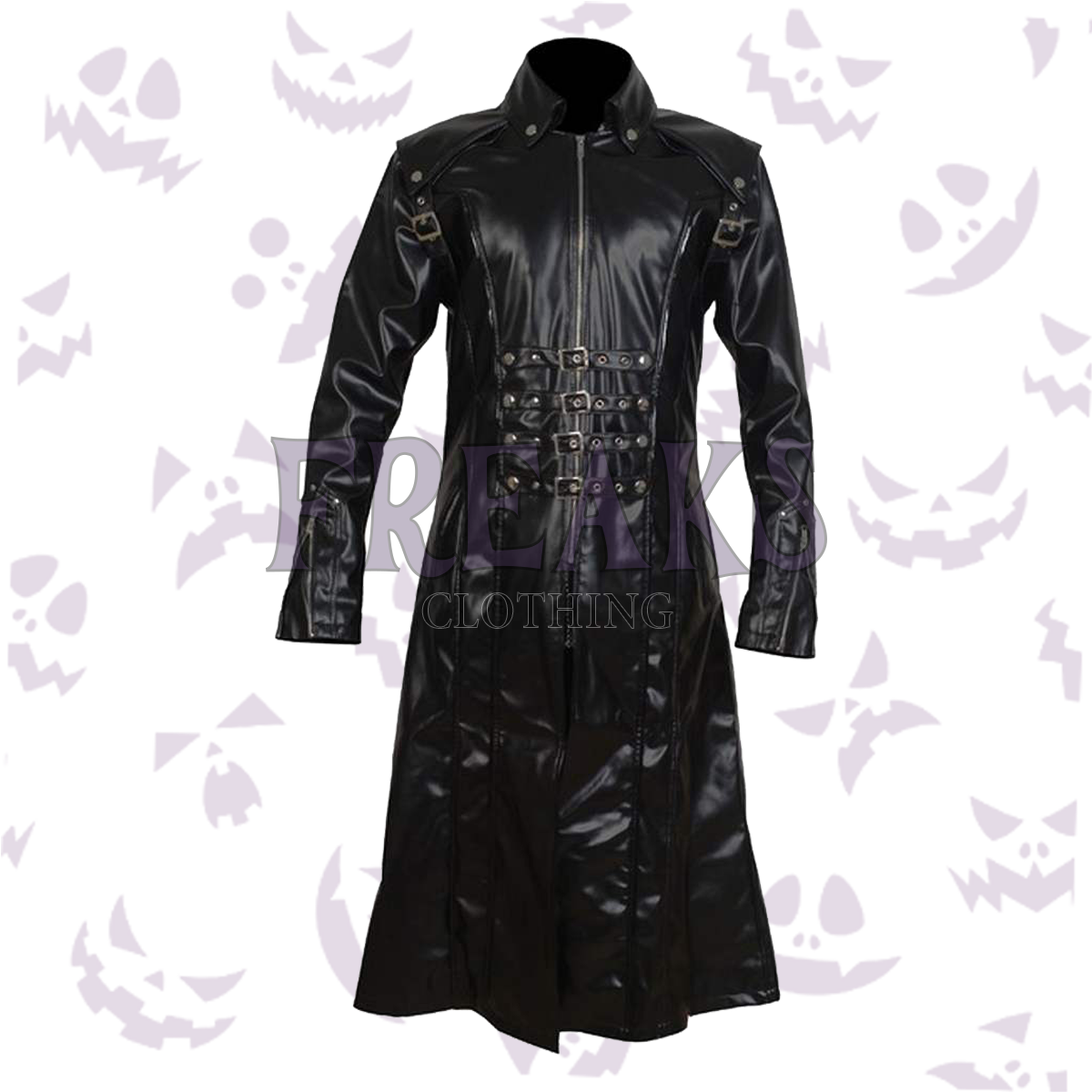 Unleash your style with Freaks' Gothic Bad Boy Leather Black Coat. This commanding long-sleeve coat is crafted from sleek black PU leather, offering a powerful and edgy presence that demands attention. It features a bold full-front zipper closure and torso is dramatically detailed with multiple horizontal buckle straps adorned with gleaming metal rivets, creating an undeniable industrial and biker aesthetic. Black shoulder epaulets with buckles and zipper details on the cuffs further amplify its rugged appeal. Perfect for gothic events, punk concerts, cyberpunk ensembles, or making a powerful, unforgettable statement in your everyday alternative streetwear wardrobe.
